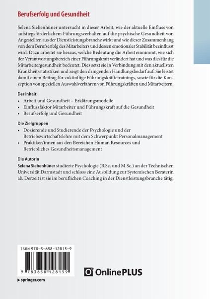Selena Siebenhüner untersucht in dieser Arbeit, wie der aktuelle Einfluss von aufstiegsförderlichem Führungsverhalten auf die psychische Gesundheit von Angestellten aus der Dienstleistungsbranche wirkt und wie dieser Zusammenhang von dem Berufserfolg des Mitarbeiters und dessen emotionaler Stabilität beeinflusst wird. Dazu arbeitet sie heraus, welche Bedeutung die Arbeit einnimmt, wie sich der Verantwortungsbereich einer Führungskraft verändert hat und was dies für die Mitarbeitergesundheit bedeutet. Dies setzt sie in Verbindung mit den aktuellsten Krankheitsstatistiken und zeigt den dringenden Handlungsbedarf auf. Sie leistet damit einen Beitrag für zukünftige Führungskräftetrainings, sowie für die Konzeption von speziellen Auswahlverfahren von Führungskräften und Mitarbeitern.