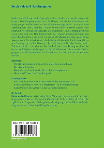 Katharina Wehking beschäftigt sich in ihrer Studie mit den Berufsvorstellungen, Handlungsstrategien und Einflüssen auf die Berufswahlentscheidung junger Geflüchteter in Berufsvorbereitungsklassen. Die mit dem Forschungsstil der Grounded Theory rekonstruierten Daten zeigen, dass aufgrund restriktiver Bedingungen des Migrations- und Übergangsregimes sowie eines Zeit- und Handlungsdrucks bei jungen Geflüchteten kaum von einer Berufswahl, als vielmehr von einem Berufspragmatismus gesprochen werden kann. Sie schreiben der Ausbildung jedoch hohe Funktionalität zu, um Passung zum Ankunftskontext herzustellen und Berufswünsche in der Zukunft realisieren zu können. Die Studie leistet einen Beitrag zu einer bisher vernachlässigten Zielgruppe von Berufswählenden, die unter den Bedingungen von Fluchtmigration ihr Verhältnis zu Arbeit und Beruf gestalten müssen.