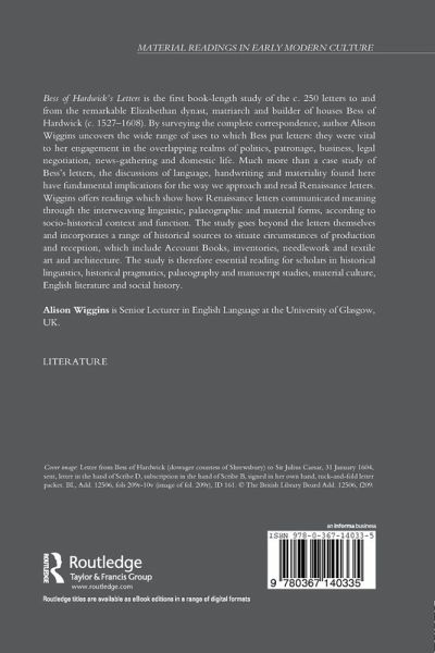 Bess of Hardwick's Letters is the first book-length study of the c. 250 letters to and from the remarkable Elizabethan dynast, matriarch and builder of houses Bess of Hardwick (c. 1527-1608). By surveying the complete correspondence, author Alison Wiggins uncovers the wide range of uses to which Bess put letters: they were vital to her engagement in the overlapping realms of politics, patronage, business, legal negotiation, news-gathering and domestic life. Much more than a case study of Bess's letters, the discussions of language, handwriting and materiality found here have fundamental implications for the way we approach and read Renaissance letters. Wiggins offers readings which show how Renaissance letters communicated meaning through the interweaving linguistic, palaeographic and material forms, according to socio-historical context and function. The study goes beyond the letters themselves and incorporates a range of historical sources to situate circumstances of production and reception, which include Account Books, inventories, needlework and textile art and architecture. The study is therefore essential reading for scholars in historical linguistics, historical pragmatics, palaeography and manuscript studies, material culture, English literature and social history.