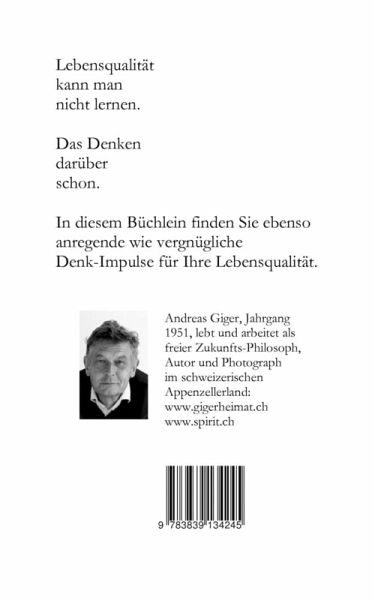 Lebensqualität kann man nicht lernen. Das Denken darüber schon. In diesem Büchlein finden Sie ebenso anregende wie vergnügliche Denk-Impulse für Ihre Lebensqualität.