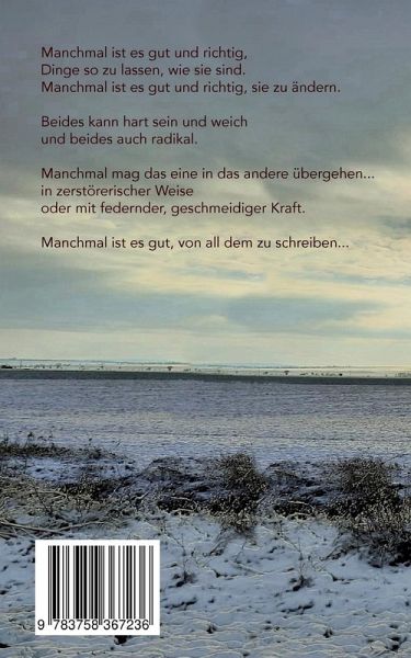 Manchmal ist es gut und richtig, Dinge so zu lassen, wie sie sind.Manchmal ist es gut und richtig, sie zu ändern.Beides kann hart sein und weich und beides auch radikal.Manchmal mag das eine in das andere übergehen... in zerstörerischer Weise oder mit federnder, geschmeidiger Kraft.Manchmal ist es gut, von all dem zu schreiben...