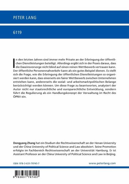 In den letzten Jahren sind immer mehr Private an der Erbringung der öffentlichen Dienstleistungen beteiligt. Allerdings ergibt sich in der Praxis daraus, dass die Daseinsvorsorge nicht blind auf einen reinen Wettbewerb vertrauen kann. Der öffentliche Personennahverkehr kann als ein gutes Beispiel dienen. Es stellt sich die Frage, wie die Erbringung der öffentlichen Dienstleistungen so organisiert werden kann, dass einerseits ein fairer Wettbewerb zwischen Unternehmen entstehen kann, andererseits die sozial- und arbeitsmarktpolitischen Belange berücksichtigt werden können. Um diese Frage zu beantworten, analysiert der Autor nicht nur staatsrechtliche und europarechtliche Entwicklung, sondern führt die Regulierung als ein Handlungskonzept der Verwaltung im Recht des ÖPNV ein.