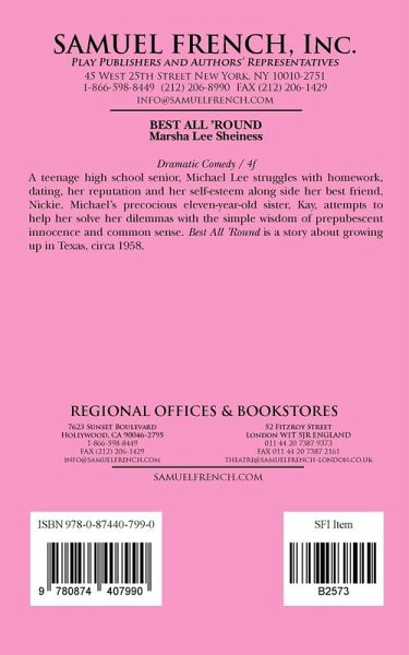 A teenage high school senior, Michael Lee, struggles with homework, dating, her reputation and her self-esteem along side her best friend, Nickie. Michael's precocious eleven-year-old sister, Kay, attempts to help her solve her dilemmas with the simple wisdom of prepubescent innocence and common sense. Best All 'Round is a story about growing up in Texas, circa 1958.