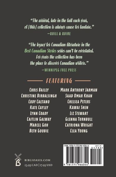 Selected by editor Steven W. Beattie, the 2025 edition of Best Canadian Stories showcases the best Canadian fiction writing published in 2023. Featuring: Chris Bailey • Christine Birbalsingh • Cody Caetano • Kate Cayley • Lynn Coady • Caitlin Galway • Marcel Goh • Beth Goobie • Mark Anthony Jarman • Saad Omar Khan • Chelsea Peters • Kawai Shen • Liz Stewart • Glenna Turnbull • Catriona Wright • Clea Young