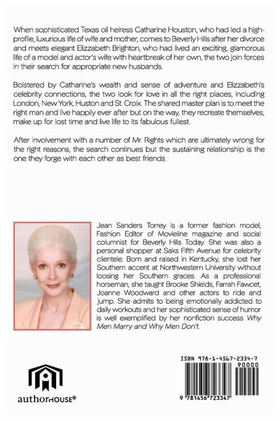 When sophisticated Texas oil heiress Catharine Houston, who had led a high-profile, luxurious life of wife and mother, comes to Beverly Hills after her divorce and meets elegant Elizzabeth Brighton, who had lived an exciting, glamorous life of a model and actor's wife with heartbreak of her own, the two join forces in their search for appropriate new husbands. Bolstered by Catharine's wealth and sense of adventure and Elizzabeth's celebrity connections, the two look for love in all the right places, including London, New York, Huston and St. Croix. The shared master plan is to meet the right man and live happily ever after but on the way, they recreate themselves, make up for lost time and live life to its fabulous fullest. After involvement with a number of Mr. Rights which are ultimately wrong for the right reasons, the search continues but the sustaining relationship is the one they forge with each other as best friends. With this roman a clef, Jean Sanders Torrey follows her nonfiction success, "Why Men Marry and Why Men Don't" with a loosely disguised glimpse into the personal world of glamour, passion and survival. In "Best Friends Forever," she explores the deep bond of friendship between two very different modern women who under the skin, deep in the valley of values, are soul sisters. They share happiness, heartbreak, hilarity and hope over the rocky course of several decades.