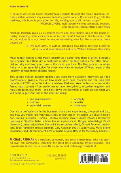 The Best Jobs in the Music Industry is an essential career guide for those who love music and are exploring different areas beyond the obvious performer route. This second edition includes updates and even more interviews, giving a look at how music jobs have changed and the long-term impacts of COVID-19 on the music industry.