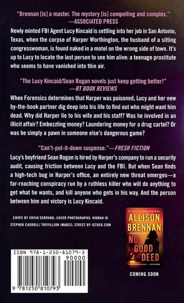 New York Times bestseller Allison Brennan's next riveting thriller featuring newly minted FBI Agent Lucy Kincaid "Brennan [is] a master. The mystery [is] compelling and complex."-Associated Press In Best Laid Plans, newly minted FBI Agent Lucy Kincaid is settling into her job in San Antonio, Texas, when the corpse of Harper Worthington, the husband of a sitting congresswoman, is found naked in a motel on the wrong side of town. It's up to Lucy to locate the last person to see him alive: a teenage prostitute who seems to have vanished into thin air. "The Lucy Kincaid/Sean Rogan novels just keep getting better!"-RT Book Reviews When forensics determines that Harper was poisoned, Lucy and her new by-the-book partner dig deep into his life to find out who might want him dead. Why did Harper lie to his wife and his staff? Was he involved in an illicit affair? Embezzling money? Laundering money for a drug cartel? Or was he simply a pawn in someone else's dangerous game? Lucy's boyfriend Sean Rogan is hired by Harper's company to run a security audit, causing friction between Lucy and the FBI. But when Sean finds a high-tech bug in Harper's office, an entirely new threat emerges-a far-reaching conspiracy run by a ruthless killer who will do anything to get what he wants, and kill anyone who gets in his way. And the person between him and victory is Lucy Kincaid.