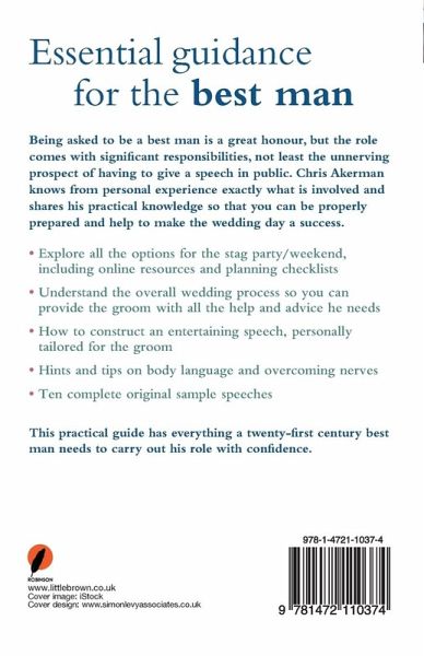 This book will help you rise to the challenge. Written in an informal and lively style it guides you through all your duties from comprehensively exploring the options for the stag party to ensuring you are fully prepared to deliver a great speech on the day (to help with this the book includes 10 original, entertaining and inventive sample speeches). Its detailed guidance should ensure that anyone chosen to be best man will be able to fulfil the role with confidence and in doing so really enjoy the experience.