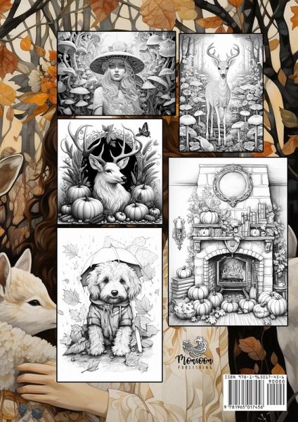 ¿Best of Autumn Coloring Book¿ A wonderful collection of all Monsoon Publishing coloring pages related to autumn The coloring book includes 56 pp. A4 white backsides - no pushing through girls and women in forest surroundings beautiful portraits with dark forest backgrounds autumn themed motifs forest animals A perfect gift for all autumn/fall and forest fans.