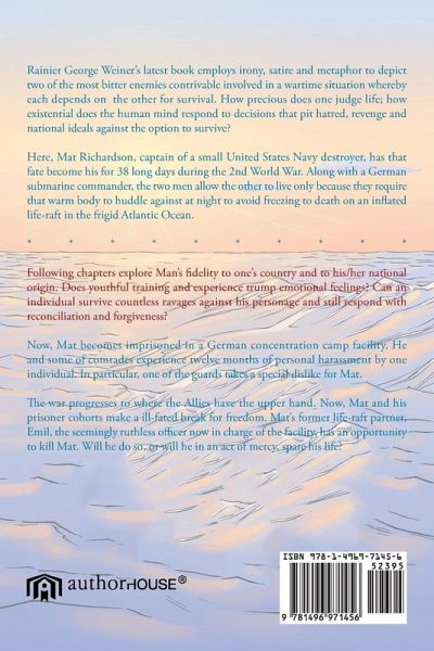 Suppose fate placed you on an inflatable life-raft in the middle of the freezing Atlantic Ocean along with your most bitter enemy contrivable? Would the emotions of hatred, revenge and love of country trump the desire to survive, if killing that enemy ensured your own demise? Captain Mat Richardson, USN, and Emil Gluckler, a German submarine commander, experience that option during the 2nd World War. Mat, captain of a small destroyer, and Emil, commander of an attacking submarine, become stranded on a life- raft after each of the combatant crafts sink each other during a fierce naval engagement. They subsequently experience 38 harrowing days striving for survival. If nothing else, this required the ultimate in mutual cooperation. If the two survived, would the events have a lasting effect on their relationship? Or, if one had the opportunity to kill the other at a later date in a new war-time circumstance, would he do so, or not?