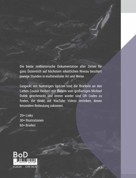 Die beste zeithistorische Dokumentation aller Zeiten auf höchstem inhaltlichen Niveau beschert launige Stunden in multimedialer Art und Weise. Gespickt mit humorigen Spitzen sind die Brieferln an den Lieben Cousin Herbert mit Bildern vom großartigen Michael Dufek geschmückt und immer wieder sind QR-Codes zu finden, die direkt auf YouTube-Videos verlinken, denen besondere Bedeutung zukommt.20+ Links30+ Illustrationen60+ Brieferl