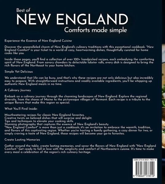 Indulge in the Timeless Flavors of New England! Welcome to a world where simplicity and tradition blend seamlessly, offering you the chance to savor the very best of New England's comfort cuisine. Prepare to embark on a culinary journey like no other with "Simplicity Meets Tradition" - a treasury of over 100 New England comfort recipes, thoughtfully designed for you to master in the cozy embrace of your own home. Time Distortion: Imagine a crisp autumn day, the gentle rustle of leaves, and the aroma of a freshly baked apple pie wafting from your oven. Time seems to slow down as you anticipate that first, warm, cinnamon-spiced bite. In the world of New England comfort cooking, time is your ally. Each recipe invites you to relish the joy of culinary artistry, allowing you to savor each moment. Pacing and Leading: Turn the pages, and you'll find yourself strolling along the charming streets of coastal towns, listening to the soothing rhythm of ocean waves. Let the quaint, white-steepled churches and centuries-old traditions guide your culinary journey. Pace yourself through the pages, becoming the master of New England comfort cuisine, one dish at a time. Awaken Your Senses: Awaken your senses to the hearty flavors of a clam chowder, the comforting aroma of a boiling lobster bake, and the sweet taste of a blueberry pie fresh from the oven. The textures, tastes, and scents will transport you to the heart of New England, creating a symphony of culinary delight that you can recreate in your very own kitchen.