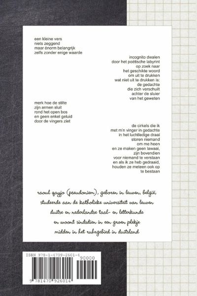 Wie schrijft, die blijft. Poëzie is een fascinerende zoektocht door de mogelijkheden van de taal en tegelijk de frustrerende ervaring als je merkt dat taal je nét niet die woorden ter beschikking stelt die je nodig hebt om dat éne sublieme gevoel te kunnen weergeven. Het is aarzelen, schrappen, herschrijven, vertwijfelen. Deze samenvatting van vier dichtbundels handelt over vriendschap, eenzaamheid, liefde, onzekerheid, gemoedelijkheid, ongeduld, oorlog, vrede, zekerheid, angst, benadering, vlucht, geloofs- en identiteitscrises. Het gaat over de oneindige zoektocht naar "God" en ware "Liefde", over de zin van het bestaan, over "waarheid" en hoe ze afwijkt van de realiteit, over leven in een fantasievolle droomwereld van woorden, over de grens tussen leven en dood, tussen gevoelens en kunst, over het verschil tussen godsdienst en levenservaring, tussen droom en werkelijkheid ... Ik wens mijn lezers veel plezier en een heleboel inspirerende momenten bij het lezen van mijn gedichten.