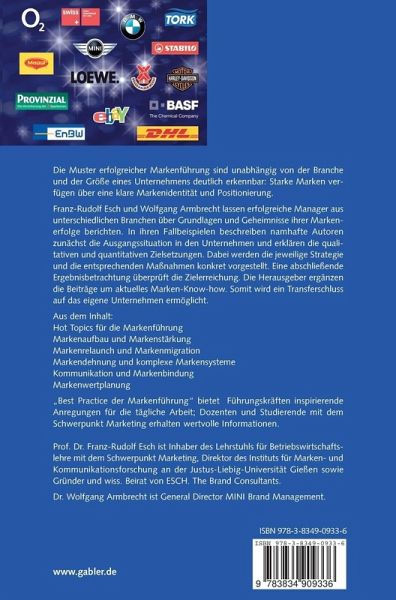 "Beste Practice der Markenführung" bietet Führungskräften inspirierende Anregungen für die tägliche Arbeit; Dozenten und Studierende mit dem Schwerpunkt Marketing erhalten wertvolle Informationen.