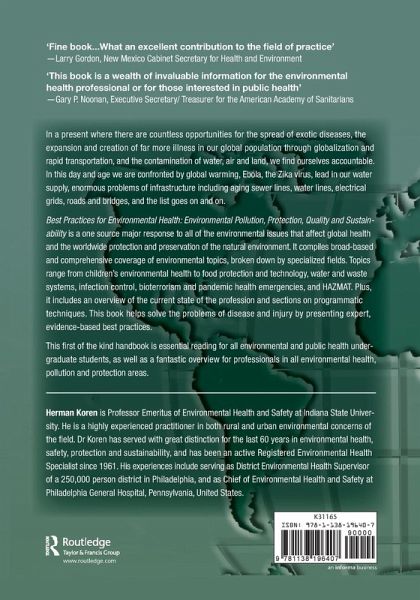 Herman Koren is Professor Emeritus of Environmental Health and Safety at Indiana State University. He is a highly experienced practitioner in both rural and urban environmental concerns of the field. Dr Koren has served with great distinction for the last 60 years in environmental health, safety, protection and sustainability, and has been an active Registered Environmental Health Specialist since 1961. His experiences include serving as District Environmental Health Supervisor of a 250,000 person district in Philadelphia, and as Chief of Environmental Health and Safety at Philadelphia General Hospital, Pennsylvania, United States.