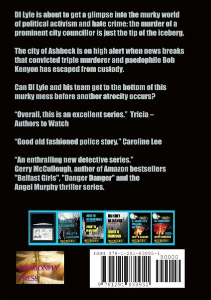 DI Lyle is about to get a glimpse into the murky world of political activism and hate crime; the murder of a prominent city councillor is just the tip of the iceberg. The city of Ashbeck is on high alert when news breaks that convicted triple murderer and paedophile Bob Kenyon has escaped from custody. Can DI Lyle and his team get to the bottom of this murky mess before another atrocity occurs?