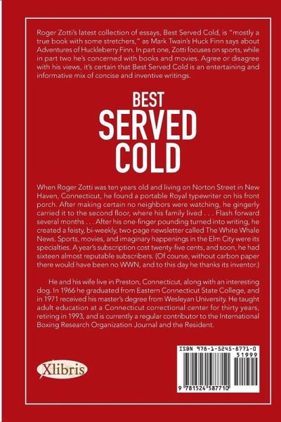 Roger Zottis latest collection of essays, Best Served Cold, is mostly a true book with some stretchers, as Mark Twains Huck Finn says about Adventures of Huckleberry Finn. In part one, Zotti focuses on sports, while in part two hes concerned with books and movies. Agree or disagree with his views, its certain that Best Served Cold is an entertaining and informative mix of concise and inventive writings.