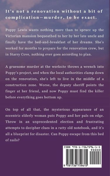 It's not a renovation without a bit of complication-murder, to be exact. Poppy Lewis wants nothing more than to spruce up the Victorian mansion bequeathed to her by her late uncle and finally have the bed-and-breakfast of her dreams. She's worked for months to prepare for the renovation crew, but in Starry Cove, nothing ever goes according to plan. A gruesome murder at the worksite throws a wrench into Poppy's project, and when the local authorities clamp down on the renovation, she's left to live in the middle of a construction zone. Worse, the deputy sheriff points the finger at her friend, and now Poppy must find the killer before everything goes bottom up. On top of all that, the mysterious appearance of an eccentric elderly woman puts Poppy and her pals on edge. Throw in an unprecedented election and frustrating attempts to decipher clues in a ratty old notebook, and it's all a blueprint for disaster. Can Poppy escape from this bed of nails? Find out in Book 2 of the Poppy Lewis Mystery series, Best Slayed Plans.