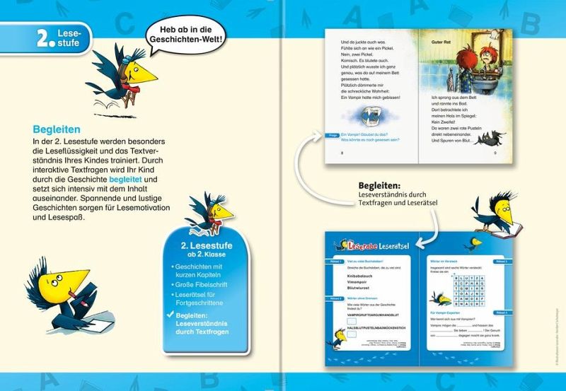 Die Kinderbücher der Reihe Leserabe wurden mit Pädagogen entwickelt und richten sich sowohl an Leseanfänger ab der 1. Klasse als auch an fortgeschrittene Erstleser ab der 2. Klasse. Die original Mildenberger Silbenmethode fördert die Lesekompetenz: Silben in Blau und Rot helfen beim Lesenlernen und verbessern nachweislich die Rechtschreibung.