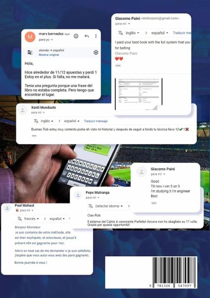My name is Rob Hamilton, and I've been betting on sports for 20 years. The game of sports betting is designed for you to lose, and that's how the bookmakers make their profits. That's why it's full of experts analyzing match after match, setting the toughest odds to make it so difficult to win. Well, I can say that I've turned that around and managed to create a method that does the exact opposite: the truly difficult thing is losing bets with my method. I've achieved 100% success, allowing me to easily earn a salary from $1,000 to $10,000, euros, pounds, etc. Guaranteed effectiveness or your money back. In the rare case that the method doesn't work for you, before leaving a bad review, contact me so I can refund your money while betting, and I'll also make the method work for you without any problems. After a few years of using it, I've decided to share it at this price. It may seem a bit expensive, but if you analyze it carefully, it's not expensive at all, since it's a single payment and you can win a little bit every month for life. As clear proof of its effectiveness, see the main cover of the book, as I've done on the "blogabet" statistics page: 23 bets, 22 were won, and 1 was suspended due to bad weather. None were lost. On the back of the cover, I show conversations with clients: an Italian, for example, saying he won 17 out of 17 bets, a Spaniard saying he only lost 1 out of 12, and a German client also saying he lost only 1 out of 12 bets. If you'd like me to send you more proof of its effectiveness, please contact me. For any questions regarding this method, its effectiveness, and other prices and discounts, since you can get it much cheaper, contact me here. I'll leave my email: robhamiltonbet@gmail.com