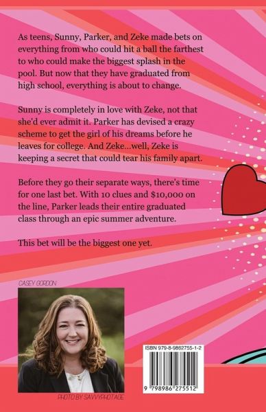As teens, Sunny, Parker, and Zeke made bets on everything from who could hit a ball the farthest to who could make the biggest splash in the pool. But now that they have graduated from high school, everything is about to change. Sunny is completely in love with Zeke, not that she'd ever admit it. Parker has devised a crazy scheme to get the girl of his dreams before he leaves for college. And Zeke...well, Zeke is keeping a secret that could tear his family apart. Before they go their separate ways, there's time for one last bet. With 10 clues and $10,000 on the line, Parker leads their entire graduated class through an epic summer adventure. This bet will be the biggest one yet.