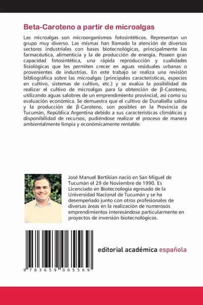 Las microalgas son microorganismos fotosintéticos. Representan un grupo muy diverso. Las mismas han llamado la atención de diversos sectores industriales con bases biotecnológicas, principalmente las farmacéutica, alimenticia y la de producción de energía. Poseen gran capacidad fotosintética, una rápida reproducción y cualidades fisiológicas que les permiten crecer en aguas residuales urbanas o provenientes de industrias. En este trabajo se realiza una revisión bibliográfica sobre las microalgas (principales características, especies en cultivo, sistemas de cultivo, etc.) y se evalúa la posibilidad de realizar el cultivo de microalgas para la obtención de beta-Caroteno, utilizando aguas salobres de un emprendimiento provincial, así como su evaluación económica. Se demuestra que el cultivo de Dunaliella salina y la producción de beta-Caroteno, son posibles en la Provincia de Tucumán, República Argentina debido a sus características climáticas y disponibilidad de recursos, pudiéndose realizar el proceso de manera ambientalmente limpia y económicamente rentable.
