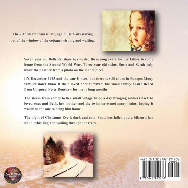 Seven year old Beth Renshaw has waited three long years for her father to come home from the Second World War. Three year old twins, Susie and Sarah only know their father from a photo on the mantelpiece. It's December 1945 and the war is over, but there is still chaos in Europe. Many families don't know if their loved ones survived. the small family hasn't heard from Corporal Peter Renshaw for many long months. The steam train comes to her small village twice a day bringing soldiers back to loved ones and Beth, her mother and the twins have met many trains, hoping it would be the one to bring him home. The night of Christmas Eve is dark and cold. Snow has fallen and a blizzard has set in, whistling and wailing through the trees.