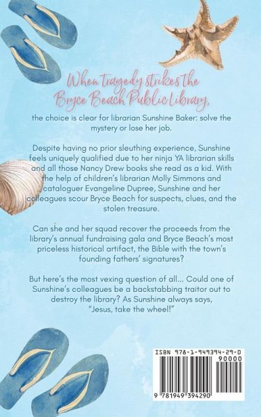 When tragedy strikes the Bryce Beach Public Library, the choice is clear for librarian Sunshine Baker: solve the mystery or lose her job. Despite having no prior sleuthing experience, Sunshine feels uniquely qualified due to her ninja YA librarian skills and all those Nancy Drew books she read as a kid. With the help of children's librarian Molly Simmons and cataloguer Evangeline Dupree, Sunshine and her colleagues scour Bryce Beach for suspects, clues, and the stolen treasure. Can she and her squad recover the proceeds from the library's annual fundraising gala and Bryce Beach's most priceless historical artifact, the Bible with the town's founding fathers' signatures? But here's the most vexing question of all: could one of Sunshine's colleagues be a backstabbing traitor out to destroy the library? As Sunshine always says, "Jesus, take the wheel!"