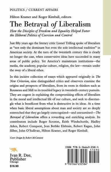In this incisive collection of essays which appeared originally in The New Criterion, ten distinguished critics and observers examine the origins and prospects of liberalism, from its roots in thinkers such as Rousseau and Mill to its troubled legacy in twentieth-century pursuits, and its compromising effects in the moral and intellectual life of our culture. Its contributors include Roger Scruton, Keith Windschuttle, Hadley Arkes, Robert Conquest, Jean Bethke Elshtain, Robert Kagan, John Silber, John O'Sullivan, Hilton Kramer, and Roger Kimball. Genuinely provocative."-Kirkus Reviews.