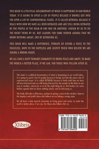 This book is a political documentary of what is happening in our world today. It is going to upset a lot of people because it brings out into the open a lot of controversial issues. It is called BETRAYAL because it deals with how we have all been betrayed and still being betrayed by the people at the helm in one way or another; chosen by us to do the right thing by us. But leaders for some hidden agenda that we know nothing about end by betraying us. This book will make a difference, perhaps by giving a voice to the voiceless, hope to the hopeless and justify those who believe we are taking a wrong route. We all have a duty towards humanity to bring peace and amity, to make the world a better place, if we can, for those who follow after us.
