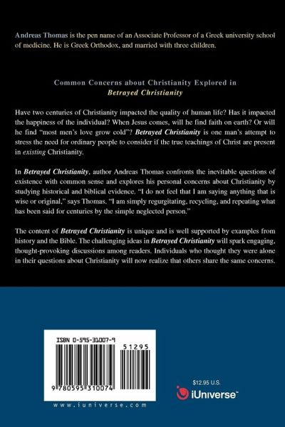 Twenty centuries existence of Christianity is enough time to evaluate its impact not only on world history but also on the quality of life of human mankind and even more on the happiness of every unique individual being on this earth. What is the answer to the question of Jesus: "when the Son of man comes, will he find faith on earth?" An ordinary thinking person presents his sincere opinion, not as an expert but as a common mortal, who confronted with the inevitable questions of existence, attempts to answer them with common sense and good will as the main criteria. He does not claim that his aspects represent the only truth. But he may assure the reader that though these thoughts are shared with many other co-mortals, they seldom have been openly expressed. If nothing else, inside this book may be traced a novel, fresh look at the Love of Jesus, which "casts out fear."