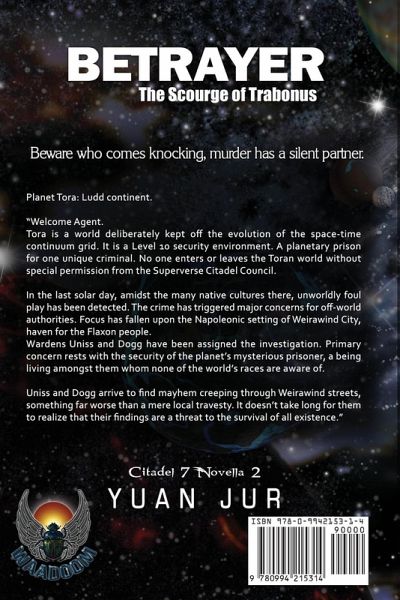 Tora: A world deliberately kept off the evolution of the space-time Continuum grid. Tora is a Level 10 security world, there isn't another more closely watched. A planetary prison for one unique criminal. On the surface several pre-industrial cultures evolve amidst other stranger races. The reality is very different. No one enters or leaves the Toran world without special permission from the Superverse Citadel Council. In the last solar day, unworldly foul play has been detected in the Napoleonic setting of Weirawind City, haven for the Flaxon culture. The crime triggers major concerns for off-world authorities at Superverse Karmic Administration Services. Wardens, Uniss and Dogg are sent to investigate. Concern rests with the security of the planet's singular mysterious prisoner, a being living amongst them who none of the world's races are aware of. Uniss and Dogg arrive to find evidence of murder and mayhem creeping through Weirawind streets, but what they discover is far worse than a mere local travesty. Instead, what is discovered is a threat to the survival of all existence.