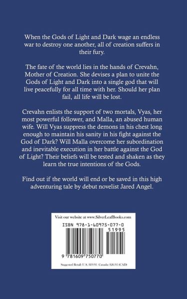 In the world of Seibu, an endless war between the gods of Light and Dark threatens to destroy all life. Crevahn, mother of creation, struggles to save her newly created world. Her success depends on Vyas, her most powerful son, and Malla, an abused human wife. Will Vyas suppress the demons in his chest long enough to maintain his sanity in his fight against the God of Dark? Will Malla's new secret lead to her execution or to victory in her battle against the God of Light? Find out if the world will end or be saved in this high adventuring tale by debut novelist Jared Angel.