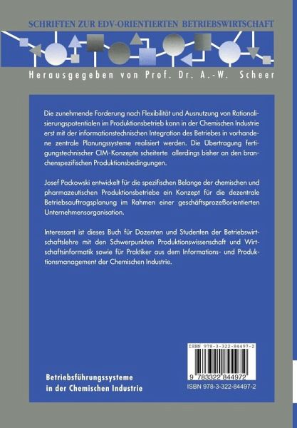 Die bislang geführte Diskussion zum Thema Produktionsinformationssysteme konzentrierte sich weitgehend auf die fertigungstechnischen Industriebranchen Maschinenbau und Elekrotechnik. DieProbleme bei der Produktionsplanung und -steurerung in der Chemischen Industrie sind völlig anderer Natur und wurden bisher weitgehend vernachlässigt. Nach einer umfassenden Informationsmodellierung des chemisch-technologischen Fertigungsbetriebs und einer weitgehenden Formalisierung der charakeristischen Produktionsplanungsproblematik in der chemischen Industrie konzipiert Josef Packowski eine Betriebsauftragsplanung für dezentral organisierte Chemiebetriebe. Dieses Fachkonzept ist sowohl für bereichsspezifische Betriebsführungssysteme als auch für ihre übergeordneten Koordinationsleitstände nutzbar. Verzeichnis: Nach einer umfassenden Informationsmodellierung des chemisch-technologischen Fertigungsbetriebs und einer weitgehenden Formalisierung der charakteristischen Produktionsplanungs-problematik in der chemischen Industrie konzipiert Josef Packowski eine Betriebsauftragsplanung für dezentral organisierte Chemiebetriebe.