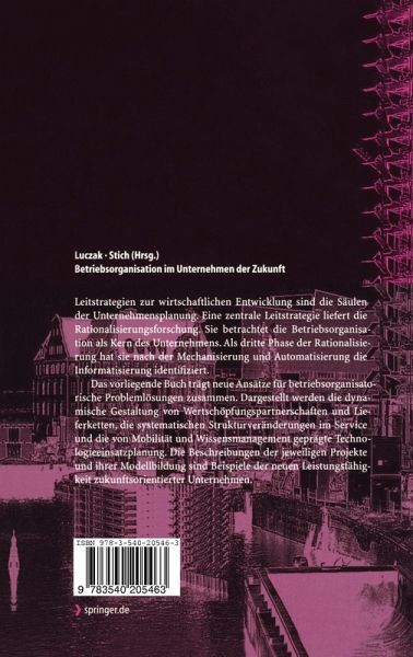 Das vorliegende Buch trägt neue Ansätze für betriebsorganisatorische Problemlösungen zusammen. Dargestellt werden die dynamische Gestaltung von Wertschöpfungspartnerschaften und Lieferketten, die systematischen Strukturveränderungen im Service und die von Mobilität und Wissensmanagement geprägte Technologieeinsatzplanung. Die Beschreibungen der jeweiligen Projekte und ihrer Modellbildung sind Beispiele der neuen Leistungsfähigkeit zukunftsorientierter Unternehmen.