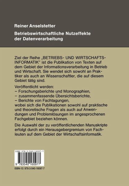 Der Zwang zur Kostenbeschrankung, insbesondere auch im Gemeinko stenbereich, und die wachsende absolute Hohe der DV-Ausgaben ha ben dazu gefUhrt, daB in immer mehr Unternehmungen bei Investi tionsantragen fUr Hard- und Software der Unternehmensleitung gut begrUndete Nutzeffektschatzungen vorgelegt werden mUssen. Mit der frUher zum Teil Ublichen Vorgehensweise, nur einige Nutzeffekte zu quantifizieren und den groBeren Teil der Ausgaben mit nicht quantifizierbaren ("ideellen") Wirkungen zu rechtfertigen, gibt man sich heute immer weniger zufrieden. In dieser Situation sind FUhrungskrafte im DV-Bereich auf Vergleichsinformationen aus an deren Betrieben ebenso angewiesen wie auf Anregungen, worauf Schatzungen aufgebaut werden konnen. Dazu Hilfen bereitzustellen, war ein Anliegen eines Projektes, das am Betriebswirtschaftlichen Institut der Universitat Erlangen-NUrnberg unter der Leitung von Herrn Prof. Dr. Peter Mertens und mit groi3er UnterstUtzung der IBM Deutschland GmbH durchgefUhrt worden ist und aus dem heraus dieses Buch entstand. Herrn Prof. Dr. Peter )V[ertens und Herrn Dr. Thomas E. ckardt danke ich besonders, weil sie durch ihre Projektmi tarbei t wesentlich dazu beitrugen, daB fUr die vorliegende Analyse eine umfangreiche und empirisch fundierte Basis gelegt werden konnte. FUr zahl reiche technische Hilfen danke ich Frau Marga Stein sehr herz lich, ebenso Frau Wal traud RUck und Frau cand. rer. pol. Petra RUcker. Danken mochte ich vor allem auch Herrri Dr. Freimut Boden dorf sowie den Herren Dr. Mathias Kretzschmar und GUnter Purucker, die wesentliche Voraussetzungen fUr die maschinelle Dokumentation der Untersuchungsergebnisse schufen. Herr Dipl. Volksw.