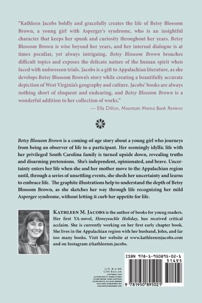 Betsy Blossom Brown is a coming-of-age story about a young girl who journeys from being an observer of life to a participant. Her seemingly idyllic life with her privileged South Carolina family is turned upside down, revealing truths and disarming pretensions. She's independent, opinionated, and brave. Uncertainty enters her life when she and her mother move to the Appalachian region until, through a series of unsettling events; she sheds her uncertainty and learns to embrace life. The graphite illustrations help to understand the depth of Betsy Blossom Brown, as she sketches her way through life recognizing her mild Asperger syndrome, without letting it curb her appetite for life.