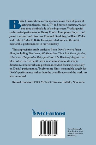 Bette Davis, whose career spanned almost 50 years and covered theatre, radio, TV and motion pictures, was at one time the first lady of the big screen. Working with such storied performers as Henry Fonda, Humphrey Bogart, and Joan Crawford, and directors Edmund Goulding, William Wyler and Robert Aldrich, Bette Davis provided some of the most memorable performances in movie history. This volume contains detailed analyses of Bette Davis' top twelve films spanning 1938 to 1987 and including The Letter, All About Eve, The Little Foxes, Jezebel, What Ever Happened to Baby Jane? and The Whales of August. Each film is discussed in depth, with an examination of its script, direction, camerawork and performances, particularly as they relate to Davis's work. A second group of films, memorable largely for Davis's performance rather than the overall success of the work, are also examined. Special emphasis is placed on the way Davis viewed her own work as well as the detrimental effect her devotion to her career had on her personal life. Appendices contain a list of her marriages and children; her Oscar nominations; a discussion of Davis's missed opportunities; and a partial chronology of her films.