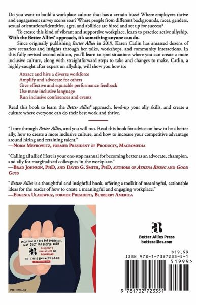 The highly-acclaimed, practical guide for how to be an ally in the workplace, now in its 2nd edition. Do you want to build a workplace culture that has a certain buzz? Where employees thrive and engagement survey scores soar? Where people from different backgrounds, races, genders, sexual orientations/identities, ages, and abilities are hired and set up for success? To create this kind of vibrant and supportive workplace, learn to practice active allyship. With the Better Allies® approach, it's something anyone can do. Since originally publishing Better Allies in 2019, Karen Catlin has amassed dozens of new scenarios and insights through her talks, workshops, and community interactions. In this fully revised second edition, you'll learn to spot situations where you can create a more inclusive culture, along with straightforward steps to take and changes to make. Catlin, a highly-sought after expert on allyship, will show you how to: ¿ Attract and hire a diverse workforce ¿ Amplify and advocate for others ¿ Give effective and equitable performance feedback ¿ Use more inclusive language ¿ Run inclusive conferences and events Read this book to learn the Better Allies® approach, level-up your ally skills, and create a culture where everyone can do their best work and thrive.