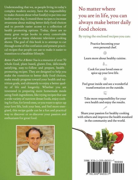 Better Food For A Better You is a resource of over 70 whole-food, plant-based, gluten-free, deliciously satisfying, affordable and easy-to-prepare, health-promoting recipes that are designed to help you transition to making better food choices, make steady progress toward your health and nutrition goals, and ultimately enjoy a better quality of life. Whether you are interested in preparing more homemade meals using fresh ingredients, trying recipes that use better food substitutions, just enjoy cooking for yourself or loved ones, or want to spice-up your love life, this recipe guide can be a fun and practical way to discover or re-discover your enthusiasm for great food.
