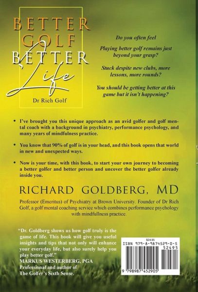 Professor (Emeritus) of Psychiatry & Human Behavior at the Warren Alpert Medical School of Brown University. Dr Goldberg is the Founder of Dr Rich Golf, a golf mental coaching program. Dr Rich Golf brings together experience from a 45 year career in psychiatry, 25 years of competing in endurance athletics, including Ironman triathlon, and 50 years study of Eastern philosophy and mindfulness meditation. Dr Rich has coached golfers at many levels to improve their golf game and the enhance their lives.