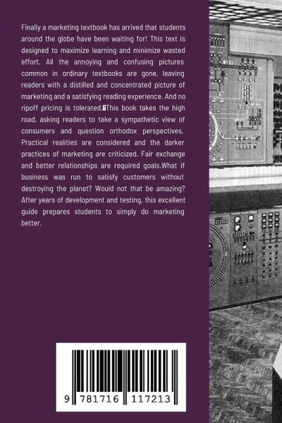 Finally a marketing textbook has arrived that students around the globe have been waiting for! This text is designed to maximize learning and minimize wasted effort. All the annoying and confusing pictures common in ordinary textbooks are gone, leaving readers with a distilled and concentrated picture of marketing and a satisfying reading experience. And no ripoff pricing is tolerated. This book takes the high road, asking readers to take a sympathetic view of consumers and question orthodox perspectives. Practical realities are considered and the darker practices of marketing are criticized. Fair exchange and better relationships are required goals. What if business was run to satisfy customers without destroying the planet? Would not that be amazing? After years of development and testing, this guide prepares students to simply do marketing better.