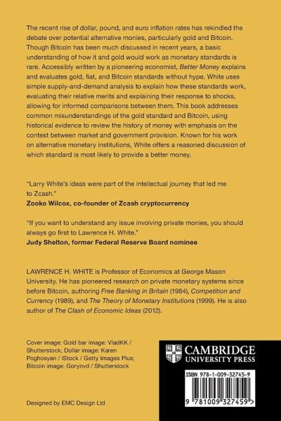 The recent rise of dollar and euro inflation rates has rekindled interest in two alternative monies: gold and Bitcoin. Written in accessible style by a respected specialist on monetary institutions, Better Money explains and evaluates gold, fiat, and Bitcoin standards without hype.