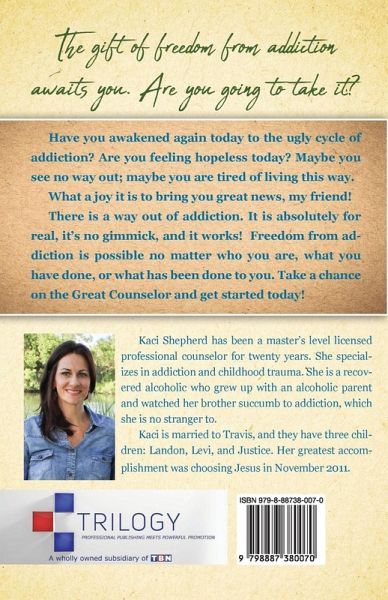 The gift of freedom from addiction awaits you. Are you going to take it? Have you awakened again today to the ugly cycle of addiction? Are you feeling hopeless today? Maybe you see no way out; maybe you are tired of living this way. What a joy it is to bring you great news, my friend! There is a way out of addiction. It is absolutely for real, it's no gimmick, and it works! Freedom from addiction is possible no matter who you are, what you have done, or what has been done to you. Take a chance on the Great Counselor and get started today!