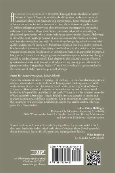 A volume in Urban Education Studies Series Series Editors: Nicholas D. Hartlep, Illinois State University, Thandeka K. Chapman, University of California, San Diego and Kenneth Fasching-Varner, Louisiana State University A school is only as good as its principal. This quip forms the thesis of Better Principals as it provides a bird's eye view on the enactment of Haberman's eleven core functions of a star principal. Better Principals is imperative for two main reasons. First, the achievement gap between 20 million children in poverty and their mainstream counterparts is continuing to become even wider. Many students are constantly subjected to inequality of educational opportunity, which limits their future opportunities. Second, Haberman is one of the most prolific producers of administrators of the twentieth century (and into the twenty-first century). He reminds us that quality school systems, with quality leaders, benefit our society. Haberman explained that there is often selection blindness when it comes to identifying school leaders, and this deficiency has many negative consequences for education in general, and learners in particular. Haberman has generated theories, training programs and tools to engender substantive changes needed to produce better schools. Each chapter in this volume contains reflection questions for discussion to remind us all why selecting quality principals must be paramount when hiring school leaders. These illustrative book chapters emphasize the execution of Haberman's star principal ideology.