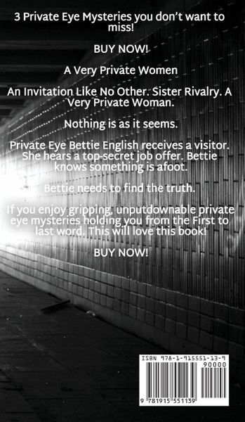 3 Private Eye Mysteries you don't want to miss! BUY NOW! A Very Private Women An Invitation Like No Other. Sister Rivalry. A Very Private Woman. Nothing is as it seems. Private Eye Bettie English receives a visitor. She hears a top-secret job offer. Bettie knows something is afoot. Bettie needs to find the truth. The Russian Case A Strange Invitation. A World In Danger. A Russian Case. Bettie solves cases. When Private Eye Bettie English receives a strange invitation. She takes the offer. Bettie investigates her most dangerous case yet. Can Bettie save the western world? A Very Urgent Matter A Stream of Emails. High-Tech Theft. A Very Urgent Matter. Conspiracies and crimes happen. Private Eye Bettie English receives tons of email. Someone wants her. Bettie opens the emails. Bettie finds herself in a deadly game. A suspenseful, gripping private eye mystery that will lead you wanting more! BUY NOW!