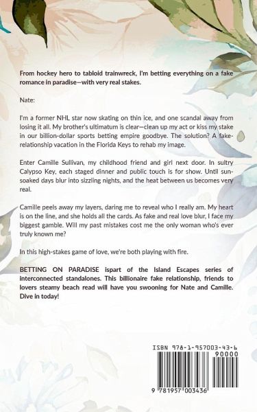 From hockey hero to tabloid trainwreck, I'm betting everything on a fake romance in paradise-with very real stakes. Nate: I'm a former NHL star now skating on thin ice, and one scandal away from losing it all. My brother's ultimatum is clear-clean up my act or kiss my stake in our billion-dollar sports betting empire goodbye. The solution? A fake-relationship vacation in the Florida Keys to rehab my image. Enter Camille Sullivan, my childhood friend and girl next door. In sultry Calypso Key, each staged dinner and public touch is for show. Until sun-soaked days blur into sizzling nights, and the heat between us becomes very real. Camille peels away my layers, daring me to reveal who I really am. My heart is on the line, and she holds all the cards. As fake and real love blur, I face my biggest gamble. Will my past mistakes cost me the only woman who's ever truly known me? In this high-stakes game of love, we're both playing with fire. BETTING ON PARADISE ispart of the Island Escapes series of interconnected standalones. This billionaire fake relationship, friends to lovers steamy beach read will have you swooning for Nate and Camille. Dive in today!