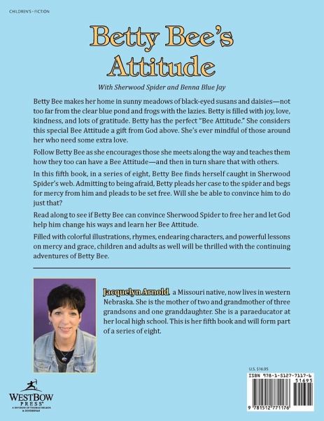 Betty Bee makes her home in sunny meadows of black-eyed susans and daisies-not too far from the clear blue pond and frogs with the lazies. Betty is filled with joy, love, kindness, and lots of gratitude. Betty has the perfect "Bee Attitude." She considers this special Bee Attitude a gift from God above. She's ever mindful of those around her who need some extra love. Follow Betty Bee as she encourages those she meets along the way and teaches them how they too can have a Bee Attitude-and then in turn share that with others. In this fifth book, in a series of eight, Betty Bee finds herself caught in Sherwood Spider's web. Admitting to being afraid, Betty pleads her case to the spider and begs for mercy from him and pleads to be set free. Will she be able to convince him to do just that? Read along to see if Betty Bee can convince Sherwood Spider to free her and let God help him change his ways and learn her Bee Attitude. Filled with colorful illustrations, rhymes, endearing characters, and powerful lessons on mercy and grace, children and adults as well will be thrilled with the continuing adventures of Betty Bee.