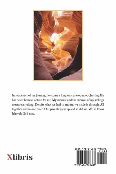 In retrospect of my journey, I've come a long way, to stop now. Quitting life has never been an option for me. My survival and the survival of my siblings meant everything. Despite what we had to endure, we made it through. All together and in one piece. Our parents grew up and so did we. We all know Jehovah God now.