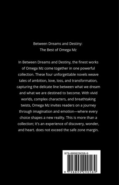 Between Dreams and Destiny: The Best of Omega Mz In Between Dreams and Destiny, the finest works of Omega Mz come together in one powerful collection. These four unforgettable novels weave tales of ambition, love, loss, and transformation, capturing the delicate line between what we dream and what we are destined to become. With vivid worlds, complex characters, and breathtaking twists, Omega Mz invites readers on a journey through imagination and emotion-where every choice shapes a new reality. This is more than a collection; it's an experience of discovery, wonder, and heart.